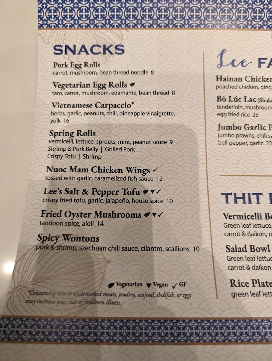 Customers rave about the generous portions and vibrant flavors. The crispy fried oyster mushrooms and uniquely seasoned Lee's salt & pepper tofu stand out as menu highlights. For those seeking vegetarian options, the restaurant excels with offerings like the vermicelli bowl featuring tofu and a savory egg roll, paired perfectly with a delicious vegetarian fish sauce.
